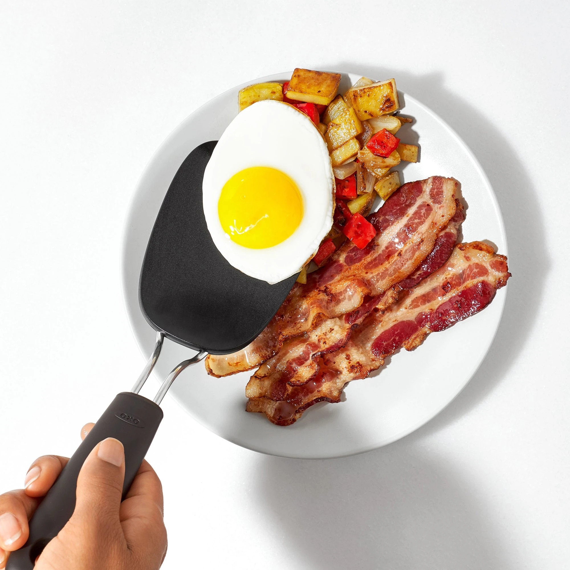 This OXO Good Grips Nylon Flexible Turner features a flexible, non-stick silicone head that gently slips beneath delicate foods. Dishwasher safe, lifetime warranty.